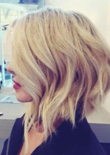 Such a haircut on wavy hair looks great without a bang. Using modern staining techniques, you can create stunning images. So, wavy hair trimmed in this way looks good if it was dyed using balayazh or ombre technique. Experts note that this haircut on medium hair is quite simple to perform. In order to cut the curls in this way, the master performs the following manipulations.