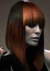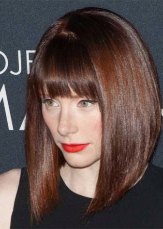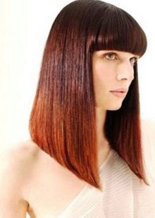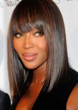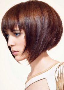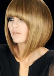 - Modifications of an elongated bob-car with bangs well emphasize the expressiveness of a woman's facial features. If you add spectacular makeup here, the woman will become truly amazing.