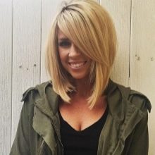 However, time passed and more often hairdressers began to add bangs to this hairstyle, which, in turn, helped to mask some appearance defects. For example, elongated straight frontal strands help to “smooth” a wide and sloping forehead, while emphasizing the lower part of the face. Oblique bangs help to make the face more elongated and “soften” rough features a little. Torn frontal strands make the look more expressive and put emphasis on the cheekbones.