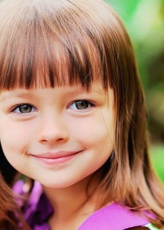 - The main element of any hairstyle is a bang. Try to choose hairstyles with short or medium length bangs so that it does not hang over the eyebrow line of the child. It should not be allowed that the girl’s field of vision is constantly hair. This can lead to further development of strabismus in the child. If you still opted for a hairstyle with a long bang, then you need to pin it in such a way that it does not interfere with vision.