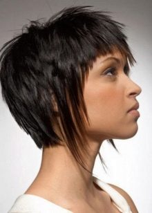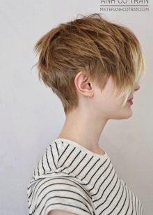 Such a haircut looks spectacular on girls with a thin, slightly elongated face. It implies the shortest strands near the ears and on the back of the head. But at the same time, the hair located on the top and bangs is made longer.