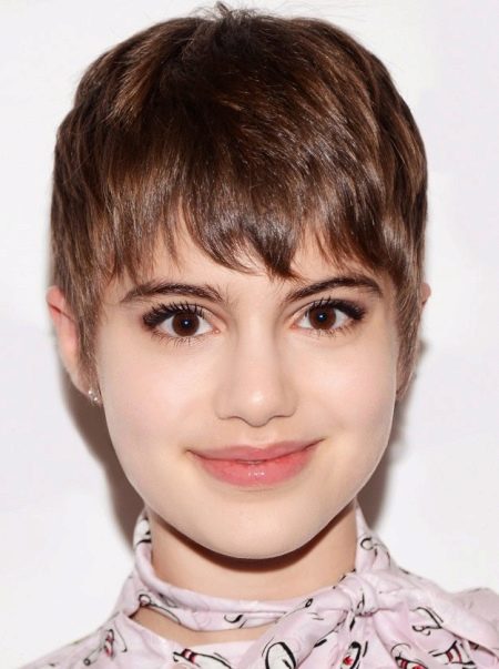 Currently, pixies with asymmetric bangs are considered fashionable. But it will not be suitable for all teenagers. This option helps to create a unique and interesting image of light negligence. Many stylists recommend doing such a haircut with bangs. For this hairstyle, smooth, triangular or even bangs are perfect, which can give the image romance.