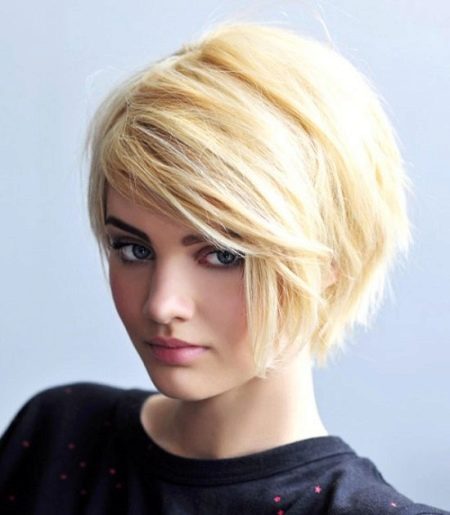On teenage girls 15-17 years old, a short hairstyle with a side part and asymmetric bangs will look spectacular. Many make such a hairstyle for light shades of hair.
