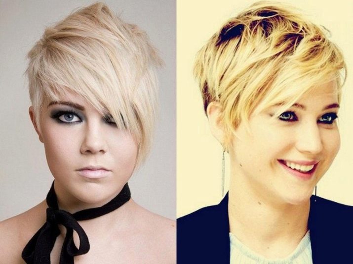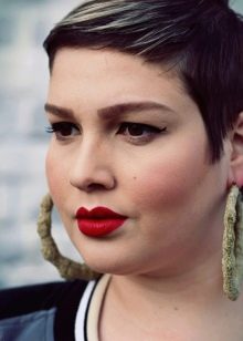 If nature awarded the girl a beautiful skull shape and an oval face, she can, with a clear conscience, allow herself to make more daring experiments with her appearance. The amount of extra pounds in this case does not play a decisive role. Shaved whiskey and whole patterns, curly forelock, voluminous hat made of thin locks or even colored mohawk. All this will look great even if the standard 90-60-60 are very far from the real size of the lady.