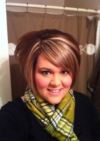 - Length. There is a certain stereotype in society that full women should cut their hair to the chin line or even higher. At the same time, too short haircuts, similar to men, are also not recommended. However, it is not necessary to completely exclude elongated below the shoulders or extremely short hair.