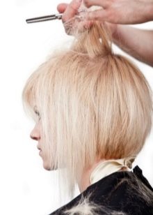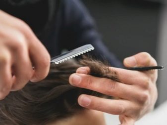 Instead of thinning scissors, you can use a razor or a machine with a special nozzle, but experienced craftsmen usually turn to such solutions. The hair here is trimmed in height for about 5-7 movements. The razor must be kept parallel to the hair.