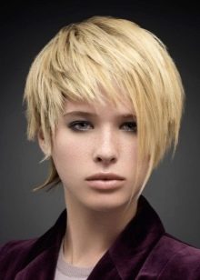 - Triangular. A face of this shape is characterized by the fact that it has a wide forehead and a narrow chin. For ladies with such a face, stylists and experienced hairdressers are advised to turn to fashionable ragged hairstyles that have passed the thinning. Bangs are also best done ragged. However, stepping is desirable to do from the middle of the face in order to achieve a good visual effect. It is permissible to give the crown an extra volume.