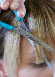 Handling the bangs will be an ideal solution if a woman has a triangular shape by nature. Before starting such work, you need to thoroughly wash and then dry your hair. It is not recommended to do thinning on wet strands, since in this case the bangs can be much shorter than planned.