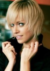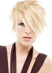 Experimenting with a palette of colors and shades, you can "play" with such an element as bangs. For example, its “ragged” variation on a short head of hair will look even more spectacular and more seductive.