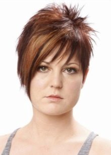 The shortened version will not suit persons of a square or round shape, since protruding cheekbones are emphasized by filing and multi-layer. But a long oblique fringe will completely correct the situation.