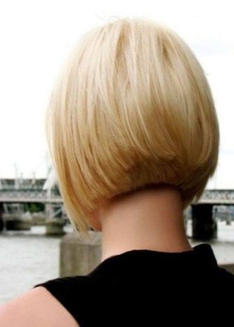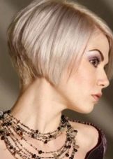 The hair on the back of the head is cut short enough for another type of caret - on the leg. At the same time, an impressive volume is obtained on the back of the head. The front strands remain straight and long (about 5 cm below the chin). This haircut looks great on girls and women with a beautiful neck and straight hair structure. Also, this hairstyle goes well not only with a platinum blond, but also with highlighting.