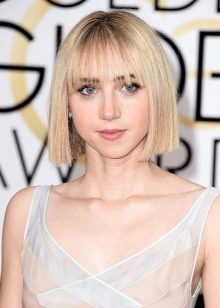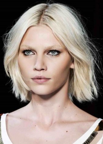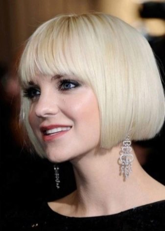 For blondes with platinum straight hair, a great option would be straight short square with or without bangs. It does not require long efforts during installation, and also gives gloss to the bow.
