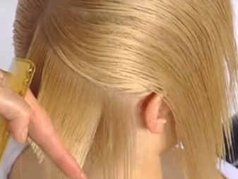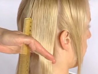 It is necessary to start a haircut from the back of the head. First, cut the control strand, thereby determining the length of the hairstyle. Then the curls are pulled one after another in the nape direction at an angle of 45 degrees. Each subsequent strand should be 1.5 cm longer than the previous one.