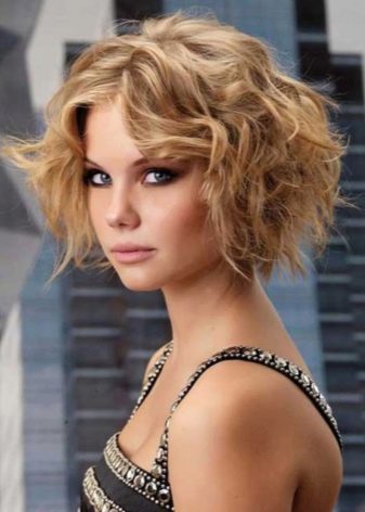 For curly hair with any blond or highlighting, a haircut is suitable bean or graduated square. Such a haircut can become universal, since without fixing means the hair is laid in short romantic curls, and when straightened, the image becomes more business or fatal (depending on clothes).