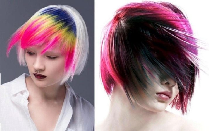 To stand out from the crowd, to be bright, attractive and noticeable will help contrasting coloring of strands. Decorated in rainbow colors, curls are able to decorate both a single bang and all hair. The type and extent of staining may vary.