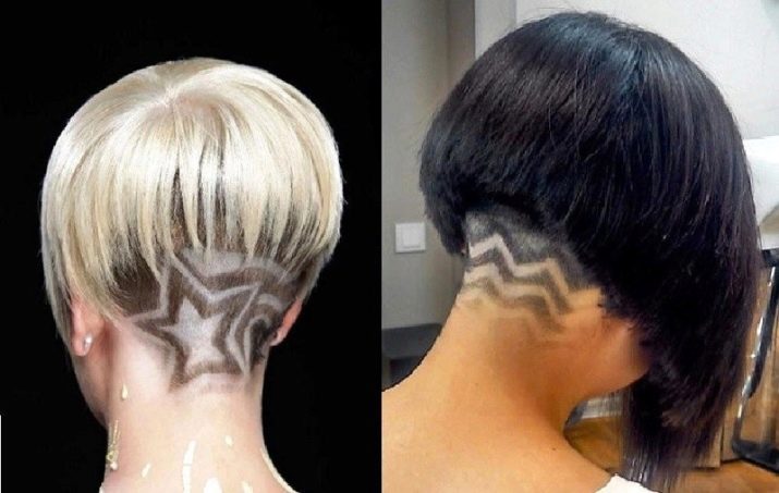 An extraordinary solution to the design of this haircut are options with a shaved curly nape or temporal part, and sometimes both at the same time. Unusually looks shaved pattern or ornament in combination with long graded strands. Such a contrast can impress and refresh the stylish image with boldness of execution.