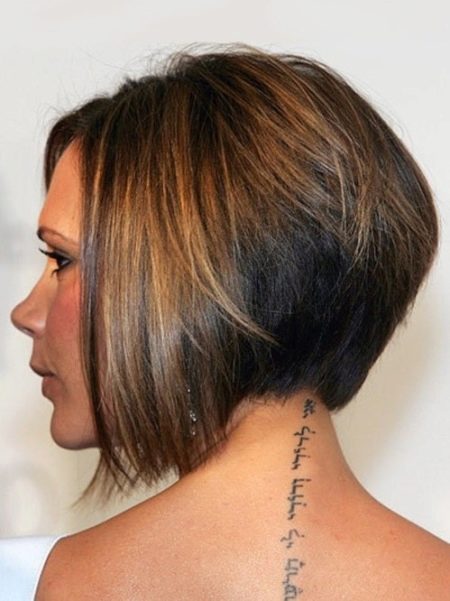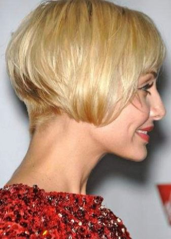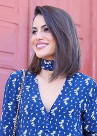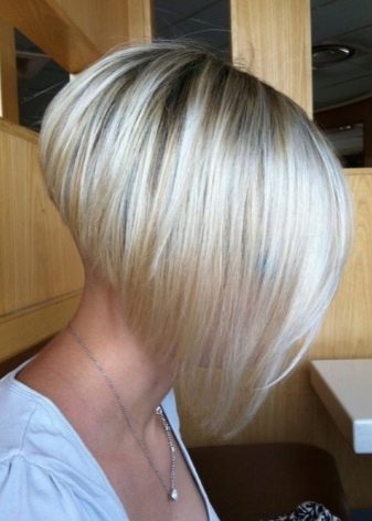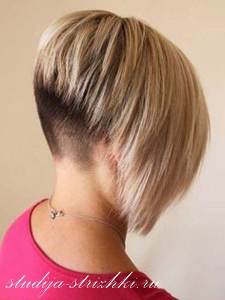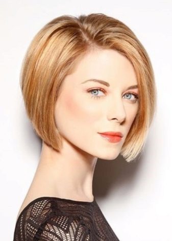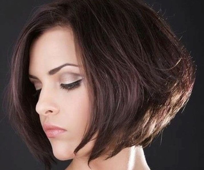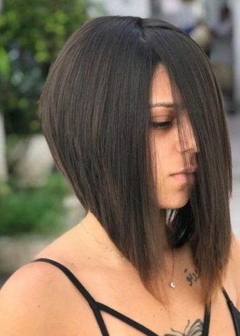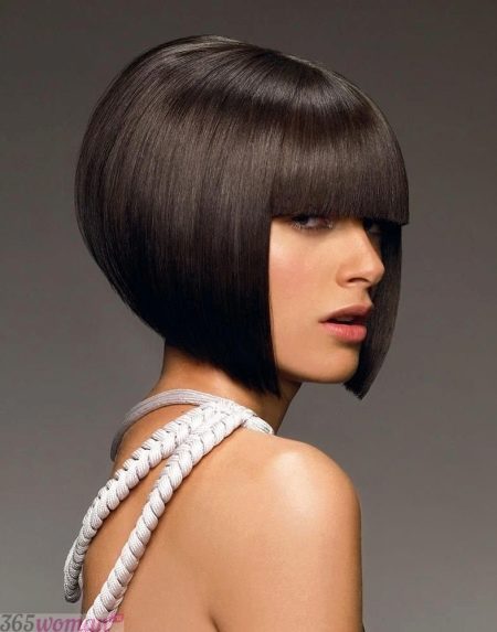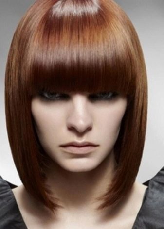 The angle in the haircut can be smooth or extremely sharp, everything will depend on the wishes and tastes of the girl. The strands on the occipital region in this case are cut short enough. The hair in front can reach the collarbone. This haircut with bangs emphasizes the whole structure of the hairstyle and visually corrects imperfections on the face.