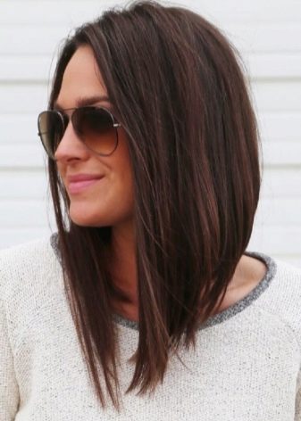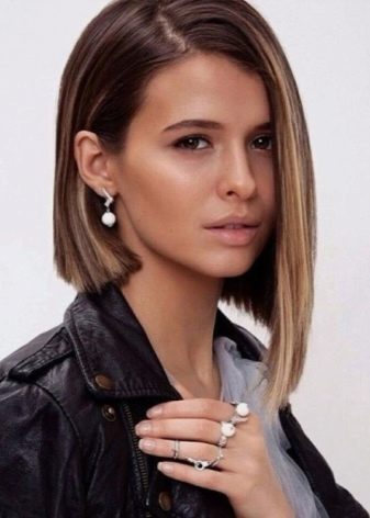 Such a haircut significantly refreshes any image and brings a certain pepper and a riddle to it. It is a mix of a classic shape and a haircut in the form of a cascade. A distinctive feature of this hairstyle is the presence of shortened strands on the back of the head, which are slightly elongated to the temples.