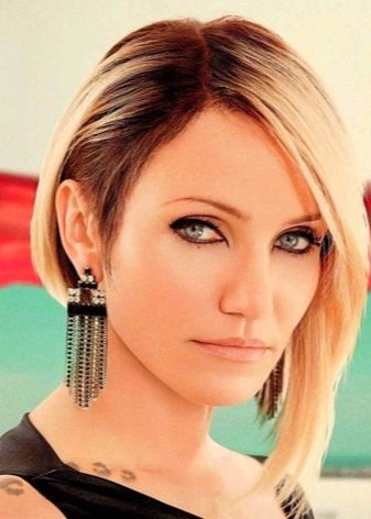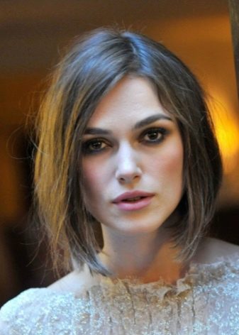 Keira Knightley and Cameron Diaz demonstrated for a long time simple variations of a square without a bang. This haircut does not need complex styling, it always looks feminine and elegant. The front strands drop just below the chin and visually stretch the face.