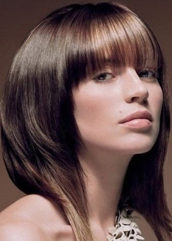 A queen with a bang is in great demand among girls. The main length reaches the chin or slightly covers the neck. This is a great hairstyle for business and successful women.