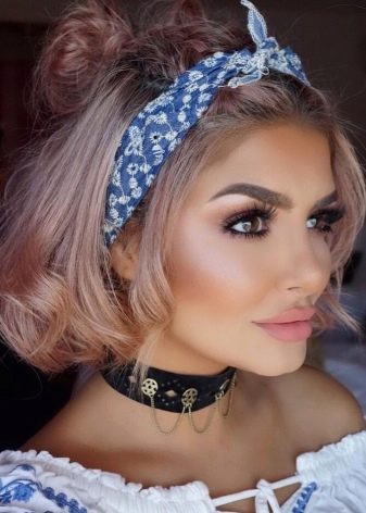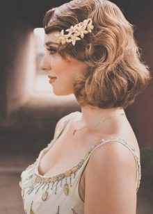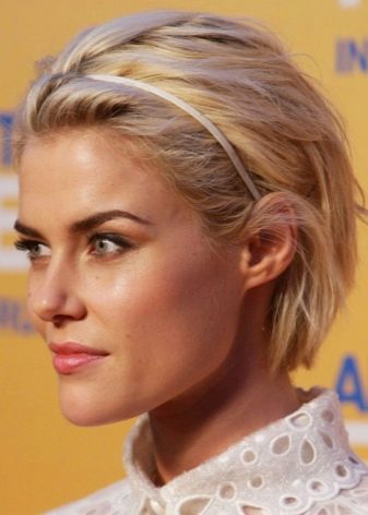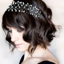 The bob-car looks spectacular in combination with ribbons or rims that fix the hair in the right position, providing sufficient volume even to weak and thin strands. The use of hairpins with rhinestones in the temporal zone is also considered quite appropriate and relevant.