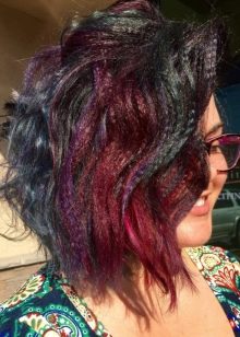 If you want to play a trick, you can make a hair with a rigid fixation even on a square with an extension, combing your hair forward and putting it in a fashionable eighties-style coca. This styling option looks especially luxurious on curls with complex staining. As decoration, you can use glitter varnish.