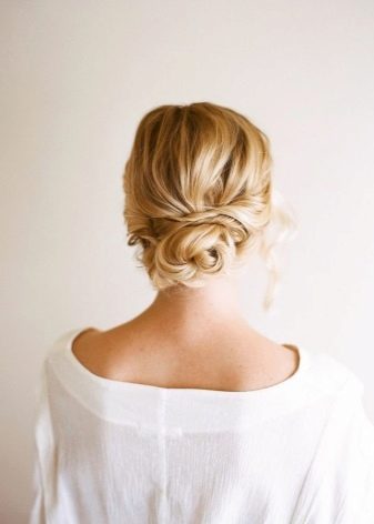 To create it, the hair is pulled back, providing volume on the back of the head, several free strands are left around the face.