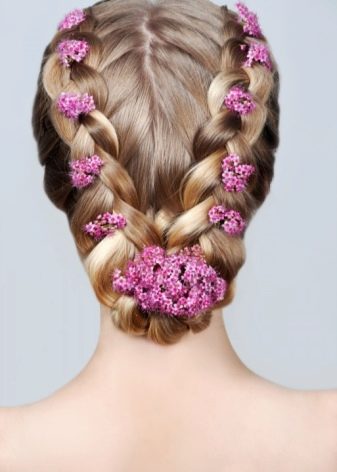 With the help of an elastic band, the hairs drawn in with the ends out are fixed around the head with a beautiful “basket” so that the locks do not get out of the hairstyle, they are fixed with varnish.