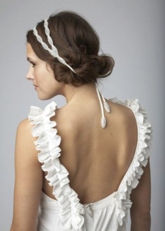 Greek-style evening styling requires an appropriate complement to clothing and shoes. The image is best complemented with sandals, a dress in the style of the goddess Olympus.