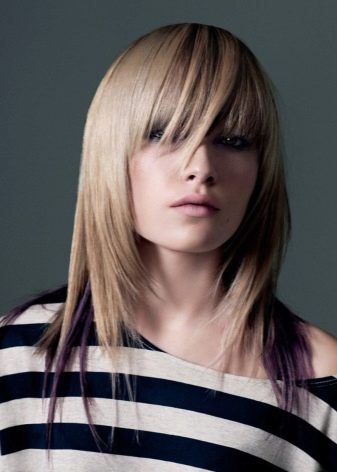 Asymmetric The bangs can be either simply combed to the side or trimmed asymmetrically. She, in turn, has many variations. Smooth, ragged, thick, structural, smooth, wavy - these are all the variations arising from this bang.