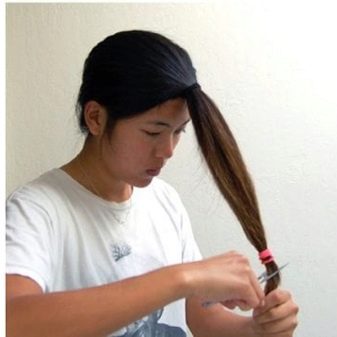 - Trim the hair, stepping back about 1-1.5 cm from the bottom gum (from the one that is fixed along the length, and not close to the head). Cut carefully and try to make the cut even.