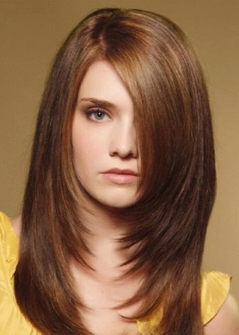 The main task of the stylist when he adjusts too long and narrow face is to visually add volume to him. For this, a cascade with a ladder is suitable, and the ladder should begin at the level of the cheekbones. This is how it will be possible to visually expand the face, make it more complete and focus on the apples of the cheeks.