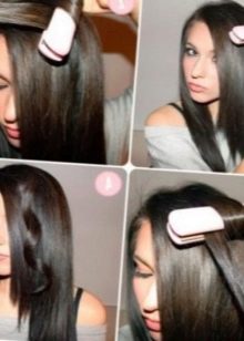 - the strands are moisturized, combed, separated posonno, the occipital and parietal parts are separated with a horizontal parting;