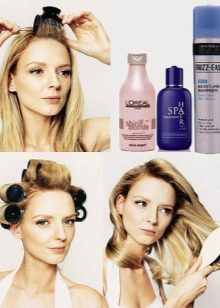 - volume at the roots will give a cascading haircut effect, use a foam or other means for volume, and, bending your head forward, dry your hair (you can use corrugations at the roots or put large curlers under the strands and dry in this way);