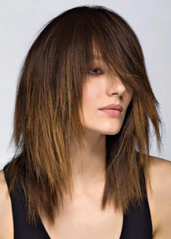 A slanting bangs and a cascade on medium hair is the most universal option that suits any type of face.