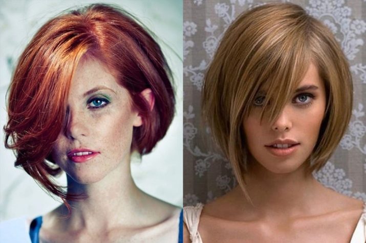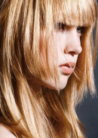 - with a long bang - emphasizes eyes, eyebrows, perfectly hides the disproportionality of long angular faces;