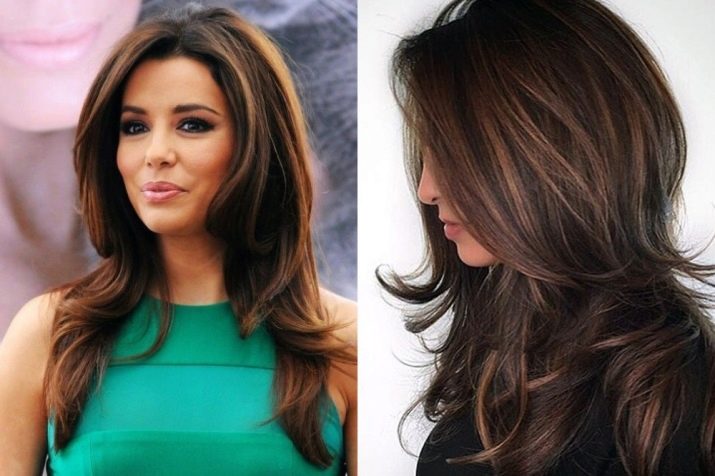 - Long strands. Here everything is almost the same as with the middle one, only the curls go down below the shoulder line. With such a hairstyle, you can create a very feminine, romantic and mysterious image. Strands lengthen the face, so they are suitable for chubby ladies. Luxuriously emphasized in glare and gradient staining methods.