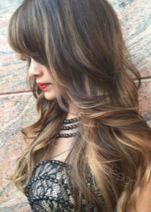 The cascade for long hair with a straight bang looks different, since it can be created using several techniques. In addition, the finishing touch to the hairstyle gives coloring. On long curls, ombre, coloring and highlighting are most often used, thanks to which a clear boundary is obtained in the transition between the steps. Today, masters use several cascade haircut schemes.