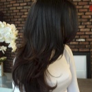 A graduated cascade on long hair makes the hairstyle much more voluminous. In this case, the lower edges remain almost unchanged. Due to graduation, the strands are straightened at the required angle, and the neck is visually extended, making the image more elegant and elegant.