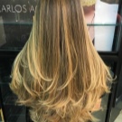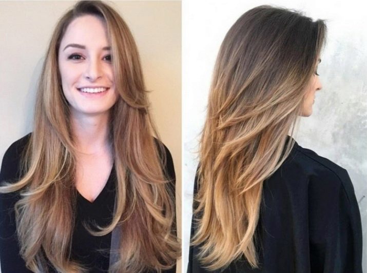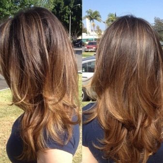A short flight of stairs suits many girls. On long hair, this haircut looks particularly impressive and luxurious. High-quality ladies' hair with an ombre effect or any other combination of light and darker shades looks very beautiful and expressive. Similar hairstyles look interesting with or without bangs.