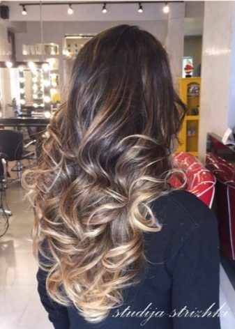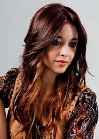 The multilayer cascade looks great on voluminous dark curls, creating the effect of additional lengthening. They can be diluted with a small amount of lighter strands.