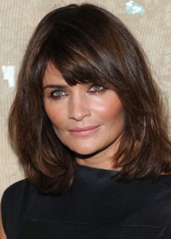 Hairdressers recommend that you cut the asymmetric bangs, long or medium, with torn ends. This is a great way to emphasize the look to hide wrinkles on the forehead and distract from other imperfections.