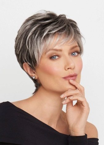 This haircut has long been considered youth, but it is so laconic and elegant that it rightfully passed into the category of anti-aging. The essence of this hairstyle is to create volume in the occipital and crown areas. At the same time, the temple area and ears remain on display. In pixie there is a lot of boyish enthusiasm, she will bring the necessary freshness and dynamism to the mature image. There are several variations of pixies: