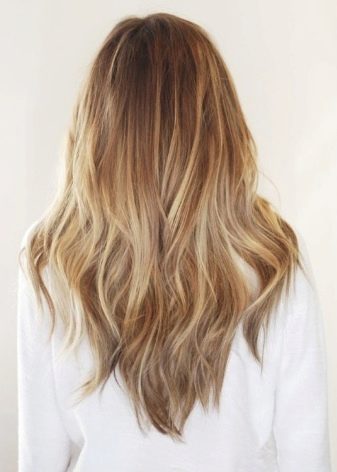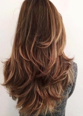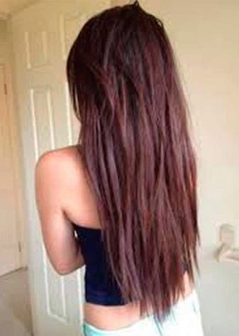 - On long hair or with the length of curls to the shoulder blades cascade haircut, and then do the fringing of the rear strands in the shape of a triangle.