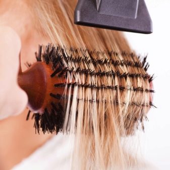 - first, the hair is washed and dried with a hairdryer to give additional volume (during drying, it is necessary to tilt your head down);