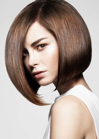 Straight haircuts fit straight haircuts, preferably shortened. Hide your high forehead under a bang, which due to the density of the strands can hide anything. If the lower part of the face is extended, a bang is not needed. Avoid options such as: