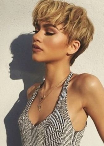 - Pixies. This is a bold and bold haircut for active and confident women. This haircut is especially for the owners of the right features, as well as those who like boyish notes in the image. Pixie is universal, suitable for any age and type of strands.