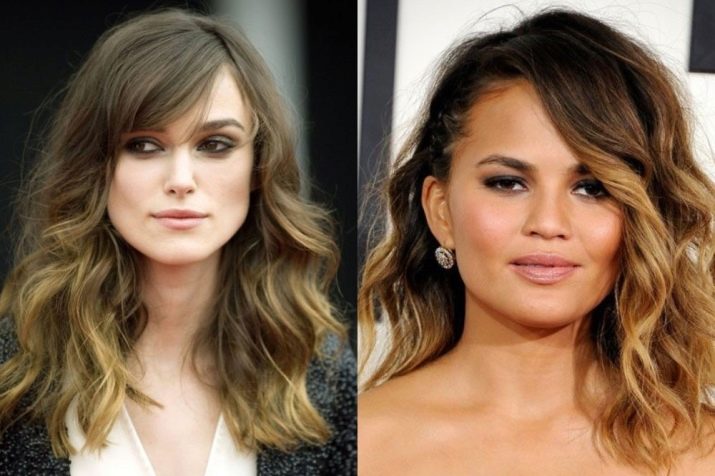 The triangle needs balance, so you should create volume along the line of the chin. Thick strands need to be cut in layers. If you want to keep the length, start selecting strands at the jaw level - this is a win-win option. Complement the haircut with flowing curls when choosing a long hairstyle. Good options are when the strands fall on the face, and the bangs are lengthened.