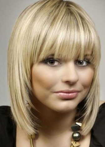 - Ladies with a square face ideal haircuts with asymmetric strands. The elongated "square" with a straight bang can look advantageous. Whatever haircut is chosen for this type of face, with its help you need to try to smooth out the angular facial features as much as possible, making them softer.
