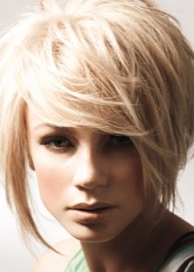 - Garzon. This bangs fit bangs, covering the eyebrow - long, on one side.If the hairstyle itself is characterized by a super-short hair length, then the addition should be the same. The oblique version of the bangs is able to soften excessively coarse facial features, visually narrow a round or square face. To make the appearance bold and bold, an asymmetric ragged version will help.